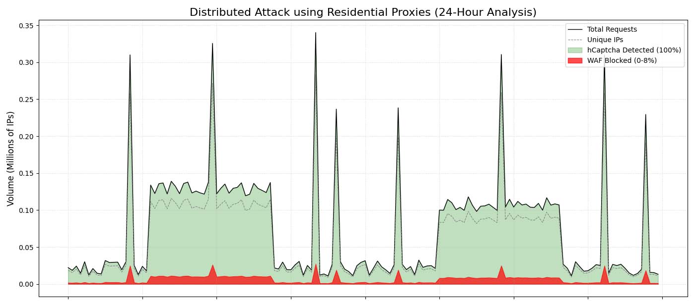 in our experience, scaled attacks by individual attackers can use millions to tens of millions of IPs, with request-per-IP rates as low as one request per day per IP.